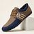 Mocassins masculinos casuais em tons de azul e marrom, com cadarço e painel contrastante, confortáveis para caminhada e uso diário, leves e ideais para viagens, dirigir, trabalhar, com looks de fim de semana e para um estilo casual elegante.