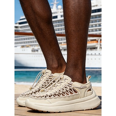 Sandálias masculinas de corda tricotada, leves e respiráveis, confortáveis para viagens, passeios na praia e férias.