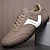 Tênis masculino casual bege com cadarço, leve e confortável para caminhada, modelo minimalista de cano baixo, ideal para uso diário, viagens, deslocamentos, looks de fim de semana, lazer ao ar livre e um estilo casual despojado.