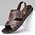 Sandálias masculinas marrons de couro sintético, com bico aberto, ideais para casamentos casuais, confortáveis e estilosas para o verão.