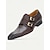 Sapatos sociais masculinos de couro marrom com fivela, elegantes sapatos de casamento sem cadarço para noivo, padrinhos e convidados, confortáveis e estilosos para ocasiões formais e semiformal.