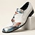 Sapatos sociais masculinos brancos estampados, mocassins de bico fino, calçados formais que chamam a atenção, ideais para casamentos, banquetes, festas, formaturas, apresentações de palco e eventos elegantes à noite.