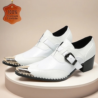 Sapatos sociais masculinos brancos em couro legítimo, modelos modernos com fivela para casamentos, calçados de luxo para noivos e convidados.