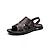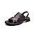 sandálias masculinas de couro sintético marrom e preto com abertura na frente, tira ajustável e sola acolchoada – calçado casual de verão para uso diário