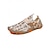 Mocassins masculinos bege de lona com padrão decorativo, leves e respiráveis, perfeitos para resorts ao ar livre, viagens e lazer.