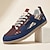 Tênis masculino azul patchwork casual com cadarço, leve e confortável para caminhada, ideal para uso diário, viagens, looks urbanos, fins de semana, atividades ao ar livre e um estilo casual moderno.