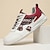 Tênis esportivo masculino em couro sintético branco e vermelho, leve e respirável, ideal para corrida, academia e atividades ao ar livre.