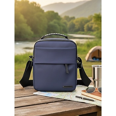 Bolsa transversal masculina de nylon em várias cores, com grande capacidade, múltiplos bolsos e alça ajustável, ideal para uso casual diário, viagens e atividades ao ar livre.