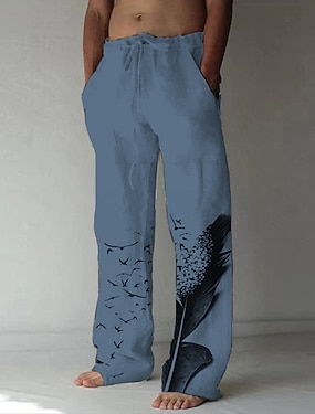 Homens Calças de linho Calças Calça verão Calças de praia Imprimir Perna reta Gráfico Sol Macio Exterior Comprimento total Casa Casual Diário Moda Roupa de rua Branco Azul Micro-Elástica