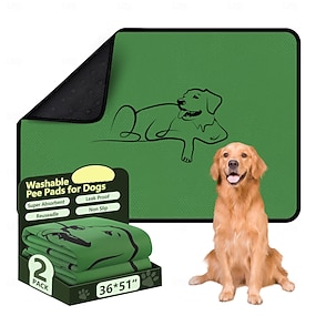 Pacote com 2 tapetes higiênicos laváveis para cães, 45 x 60 cm, reutilizáveis, para treinamento de filhotes, absorventes e antiderrapantes. &À prova de vazamentos para caixa de parto, cercado, gaiola,