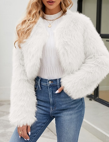 Casacos de manga comprida/jaquetas de pele falsa casamento/festa/noite envoltório feminino com sólido