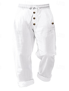 Homens Calças de linho Calças Calça verão Calças de praia Botões Com Cordão Cintura elástica Tecido Conforto Respirável Comprimento total Casual Diário Feriado Moda Estilo Clássico Preto Branco