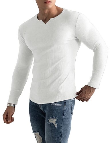 Homens Camiseta camisa muscular Camiseta de malha canelada T-shirt Manga Longa Decote V Verão Tecido Pit Strip Moda Designer Básico Tricôt Férias Rua Para Noite Azul Preto Branco Top Tee para Homens
