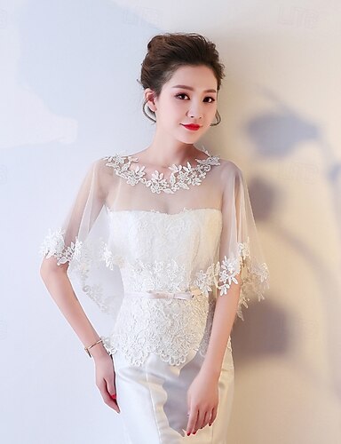 Estolas Femininas Elegante Proteção Solar Manga Curta Renda Estolas de Casamento Com Miçangas Para Festa Verão