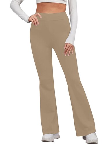 Mulheres Calças de ioga Calça Flare Perna larga Bootcut Leve Cintura Alta Pilates Treino de Ginástica Dança Calças Côr Sólida 粉色 Preto Branco Inverno Esportes Roupas Esportivas Com Stretch Ajuste