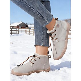 Botas femininas casuais, sem cadarço, com zíper lateral – sapatos de couro sintético macio, cano médio, para caminhadas, viagens e looks de outono