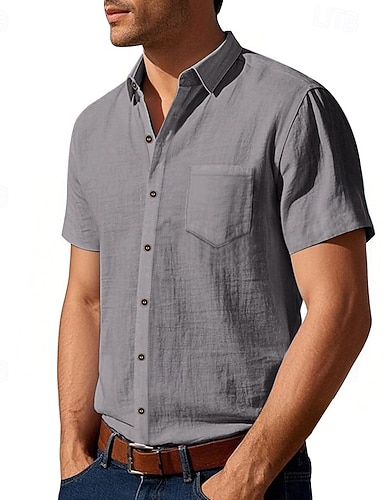 Homens Camisa Social Camisa de linho Camisa casual camisa de botão Camisa de algodão Tecido Férias Rua Preto Branco cáqui Verde Tropa Manga Curta Aberto para a Lateral Verão Roupa Bolsos