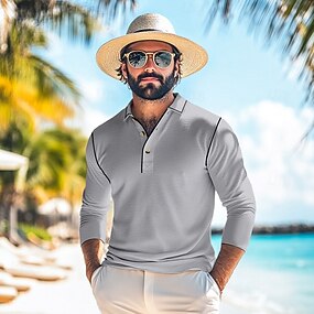 Homens Camisa de golfe pólo de golfe Trabalho Casual Lapela Manga Longa Básico Moderno Tecido Patchwork Botão Primavera & Outono Normal Preto Branco Verde Tropa Cáqui Cinzento Claro Camisa de golfe