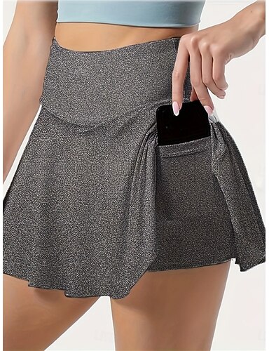 Mulheres Saia Evasê Moda Casual Mini Cintura Alta Saias Tecido 2 em 1 Com Stretch Esportes Diário Preto Branco Rosa Azul Verão Poliéster