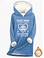Blusa feminina de moletom com capuz, estampa, quente, casual, felpuda, manga longa, modelo regular, nas cores rosa escuro, rosa claro, azul e cinza, para primavera, outono e inverno.