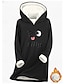 Jaqueta com capuz feminina, forro de lã quente, moletom, pijama, patchwork, zíper, casual, gato, férias ao ar livre, zíper, longo, capuz, ajuste regular, manga comprida, agasalho, preto, vermelho, verde militar, outono inverno