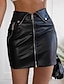 Mulheres Saia Evasê Moda Sensual Mini Cintura Alta Saias Cor Sólida Frufru Rua Diário Preto Marron Verão Pele sintetica Couro