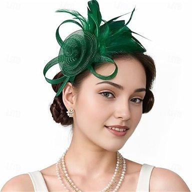 Chapéu Fedora de Linho com Pluma para Casamento Festa Noturna Chá de Bebê Corrida de Cavalo Coquetel Vintage Fofo com Cabeça de Pluma