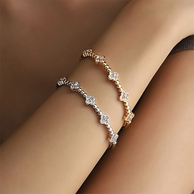 Zircão Clássico Retro Forma de flor Elegante Moda Personalizada Simples Na moda cromada Pulseira de jóias Prata / Dourado Para Casamento Festa Noivado Baile de Formatura