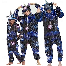 Pijama kigurumi Traje de grupo Fantasia de macacão Animal Unicórnio Fantasia Quente Confortável Com Capuz Tosão Crianças Adulto Homens Mulheres Para Meninos Dia Das Bruxas Carnaval Festa Espetáculo