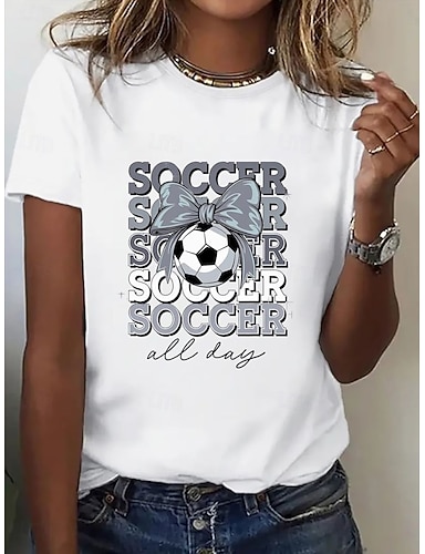 Mulheres Camiseta T-shirt Imprimir Gráfico Futebol Americano à moda Clássico Casual Manga Curta Gola Redonda Tops regulares Diário Esportes Para Noite Preto Branco Amarelo Rosa Verde Verão Primavera