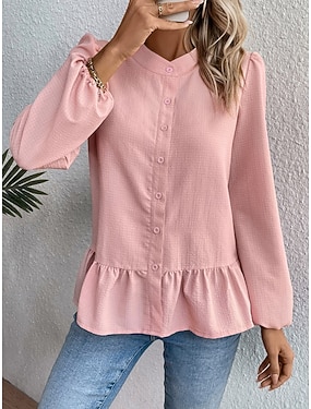 Mulheres Camisa Social Blusa Blusa com babados Patchwork Botões Tecido à moda Clássico Moderno Manga Longa Colarinho Chinês Tops regulares Diário Feriado Para Noite Rosa Verão Primavera