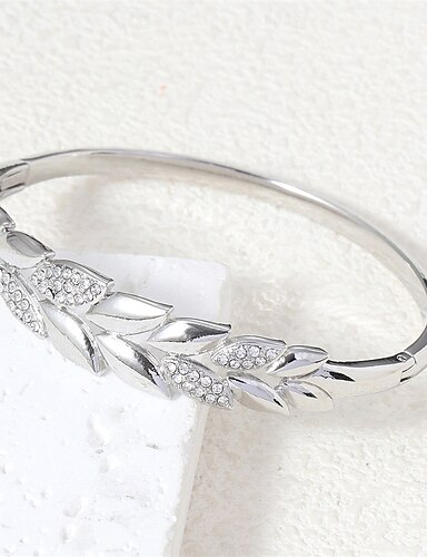 Zircão Retro Formato de Folha Moda Personalizada Simples Na moda cromada Pulseira de jóias Prata / Dourado Para Casamento Festa Noivado Baile de Formatura