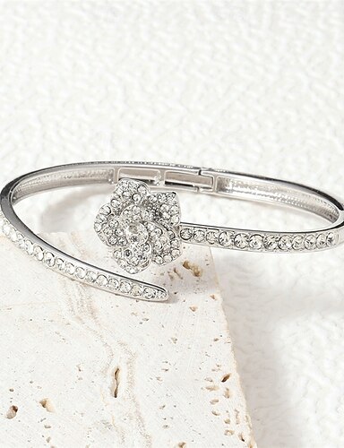 Zircão Clássico Retro Forma de flor Elegante Moda Personalizada Simples Na moda cromada Pulseira de jóias Prata / Dourado Para Casamento Festa Noivado Baile de Formatura