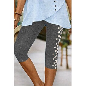 Mulheres Calças Leggings Leggings aconchegantes Roupa de rua Casual Comprimento total Natural Flor Cintura elástica Imprimir Confortável Exterior Ao ar livre Feriado Final de semana Cinza escuro
