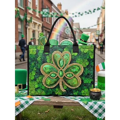 Bolsa feminina para o Dia de São Patrício – diversas estampas, grande capacidade, material de poliéster estampado, perfeita para celebrações festivas.