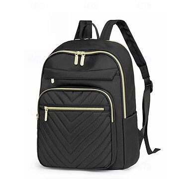 mochila de viagem feminina de nylon impermeável com bolso frontal acolchoado, zíperes dourados e alça de bagagem para viagens de negócios, escola e fins de semana