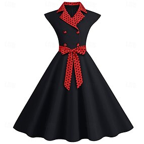 Retro Vintage Anos 50 Rockabilly Vestido swing Vestido Flare Xadrez Guingão Bolinhas Fantasia Mulheres Dia Das Bruxas Baile de Máscaras Dia a Dia Adulto Vestido Vestidos de baile