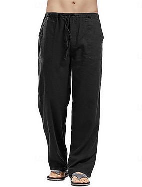 Homens Calças de linho Calças Calça verão Calças largas Calça casual Com Cordão Cintura elástica Perna reta Tecido Conforto Respirável Comprimento total Casual Diário Ao ar livre Férias Moda Preto