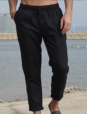 Homens Calças de linho Calças Calça verão Calças de praia Com Cordão Cintura elástica Tecido Conforto Respirável Ao ar livre Diário Para Noite Moda Roupa de rua Preto Branco