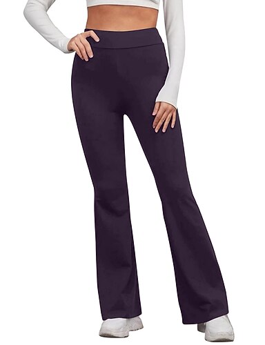 Mulheres leggings flare Moda Roupa de rua Simples Comprimento total Cintura Alta Côr Sólida Corte alto Conforto Confortável Respirável Micro-Elástica Diário Ao ar livre Férias Azul off white Preto