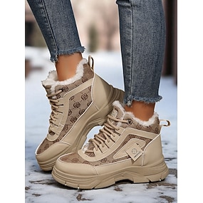 Botas de combate femininas forradas com pele cáqui, botas de inverno casuais e quentes com sola antiderrapante, calçados confortáveis para atividades ao ar livre, ideais para clima frio e viagens