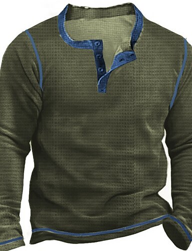 Homens Camisa Waffle Henley Camisetas Camisa de manga longa Tecido Henley Ao ar livre Casual Manga Longa Botão Roupa Moda Designer Confortável