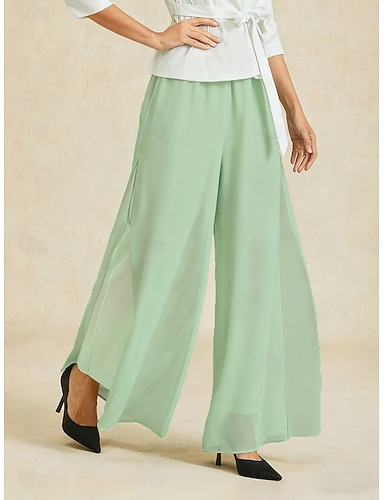 Mulheres Perna larga chinês Básico Comprimento total Cintura Alta Tecido Bolsos Cintura elástica Confortável Macio Micro-Elástica Casamento Formal Cinzento Verde Verão Primavera Normal