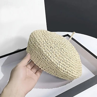 Boina fina de crochê de palha, chapéu de cor sólida, boné casual de pintor, boinas leves e respiráveis para mulheres e meninas, primavera & verão