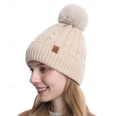Mulheres Chapéu Chapéus sem abas A Prova de Vento Quente Ao ar livre Dia a Dia Final de semana Tricotado Cor imaculada