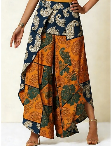 Mulheres Perna larga Calças Calça casual Férias Casual Boho Comprimento total Cintura Média Gráfico Estampado Cashemere Multi Camadas Assimétrico Macio Confortável Sem Elasticidade Diário Ao ar livre