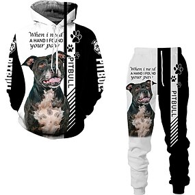 Homens Moletom Conjunto de moletons Preto e Branco Preto Branco + preto Branco Azul Com Capuz Gráfico Animal Cachorro 2 Peças Imprimir Desportos e Ar livre Casual Esportes Impressão 3D Básico Roupa