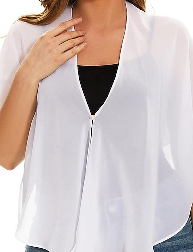 Capa e Xale Preto Envolvente Bolero Feminino Simples Sem Mangas Chiffon Envolventes para Convidadas de Casamento em Cor Pura Para Festa Noite Primavera Verão vestido para impressionar