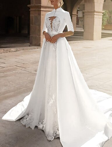 Bolero Envolvente de Noiva Capa Elegante Manga Fendida Cetim Envolventes de Casamento em Cor Pura Para Casamento Primavera Outono vestido para impressionar