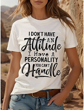 Mulheres Camiseta Imprimir Gráfico Letra à moda Casual Manga Curta Decote Redondo Tops regulares Diário Final de semana Branco Verão Primavera